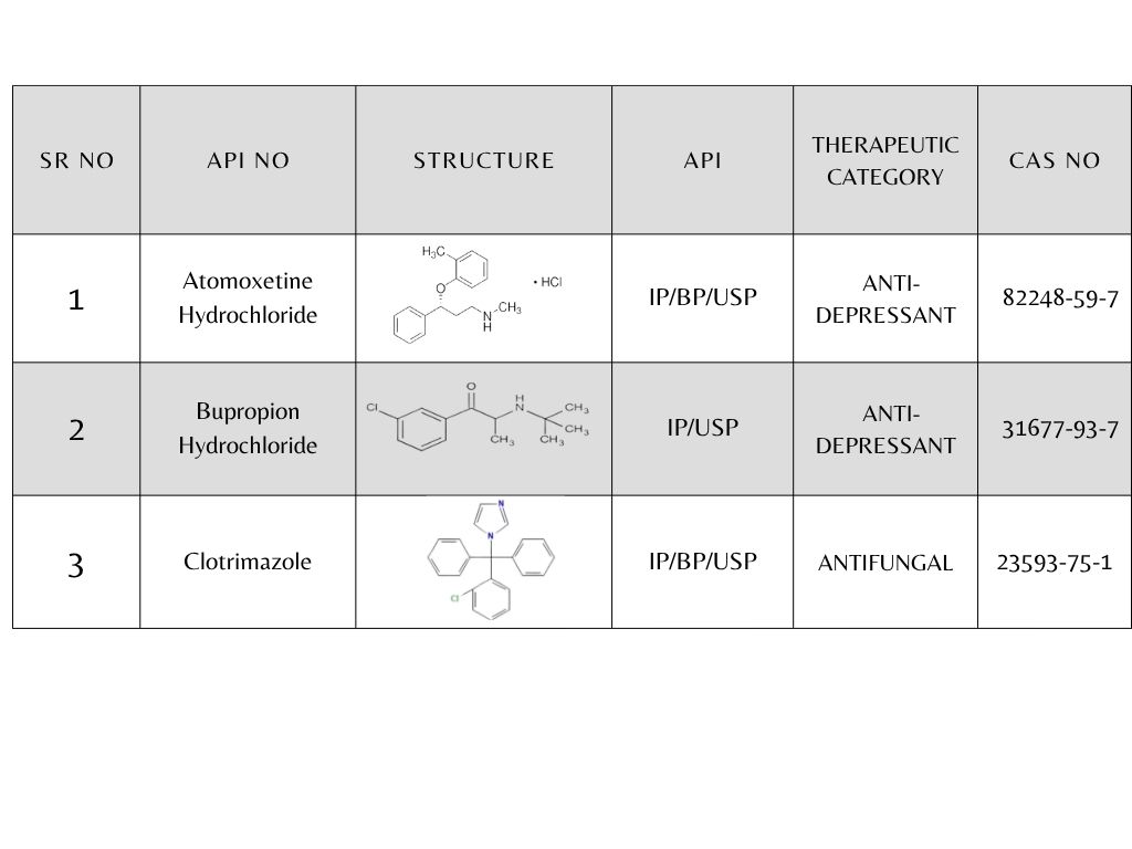 • Active Pharmaceutical Ingredients